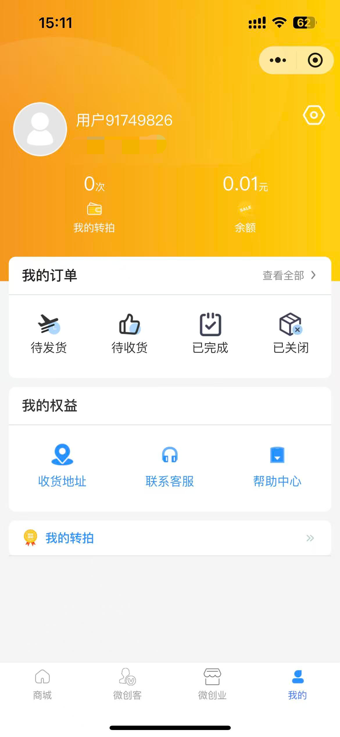 在个人中心,“我的”板块整合了地址设置、订单管理等功能,用户能随时查看商品的订单状态,轻松掌握购物进程。